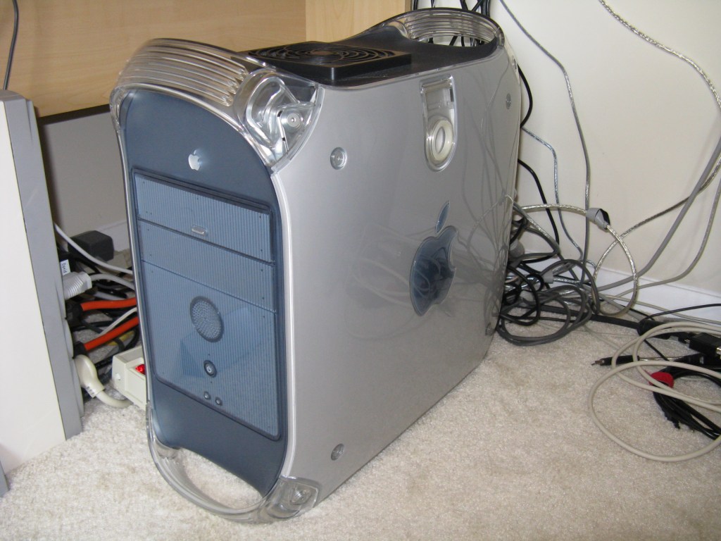 My PowerMac G4 (AGP Graphics model, a.k.a. “Sawtooth”) was becoming frustratingly slow at running modern applications; it didn’t have the CPU power to play many videos encoded with modern codecs like h.264 and Flash VP6. It was upgraded quite a bit, with a 1.4GHz CPU (it had a 400MHz originally), 1GB of PC100 RAM, a 120GB hard drive, and a DVD burner (I mean SuperDrive). I could double the RAM and get dual CPUs (for hundreds of dollars), but the biggest bottleneck seemed to be the 100MHz RAM speed, which compared to G4 Macs with similar CPU speeds but faster RAM, caused jumpy performance, with lots of stalls waiting on the memory. Fixing that bottleneck would require a new motherboard.