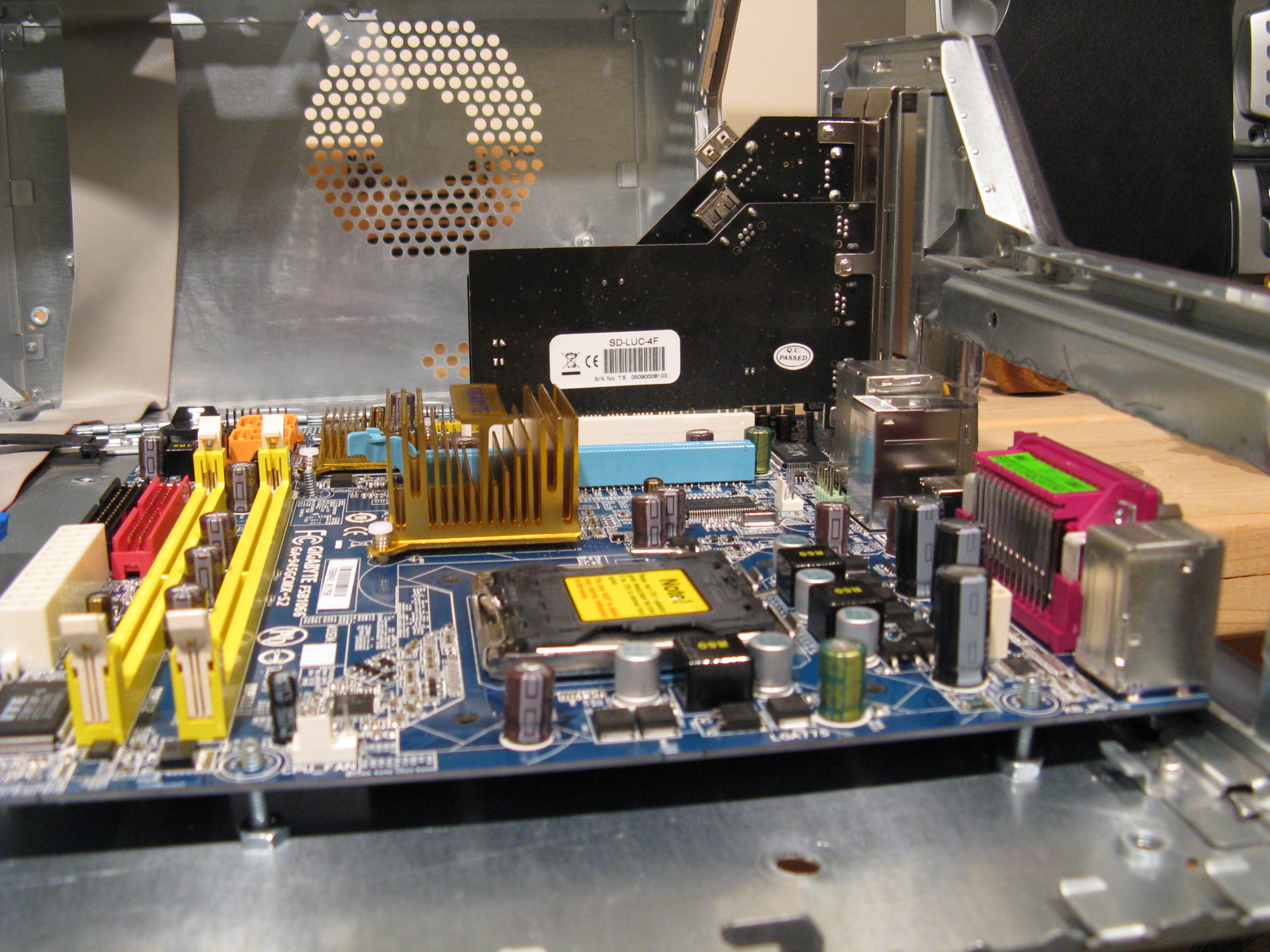 My PowerMac G4 (AGP Graphics model, a.k.a. “Sawtooth”) was becoming frustratingly slow at running modern applications; it didn’t have the CPU power to play many videos encoded with modern codecs like h.264 and Flash VP6. It was upgraded quite a bit, with a 1.4GHz CPU (it had a 400MHz originally), 1GB of PC100 RAM, a 120GB hard drive, and a DVD burner (I mean SuperDrive). I could double the RAM and get dual CPUs (for hundreds of dollars), but the biggest bottleneck seemed to be the 100MHz RAM speed, which compared to G4 Macs with similar CPU speeds but faster RAM, caused jumpy performance, with lots of stalls waiting on the memory. Fixing that bottleneck would require a new motherboard.
